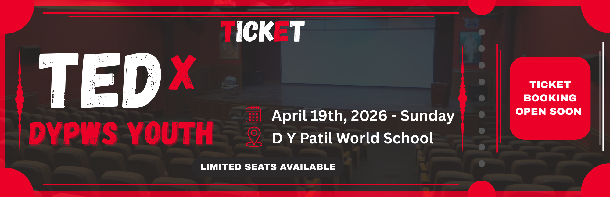 TEDx DYPWS Youth will be held on April 19th, 2026 (Sunday), at D Y Patil World School, Pune. This edition brings together young minds, educators, innovators, and changemakers to share bold ideas and inspiring stories that spark curiosity and meaningful change.